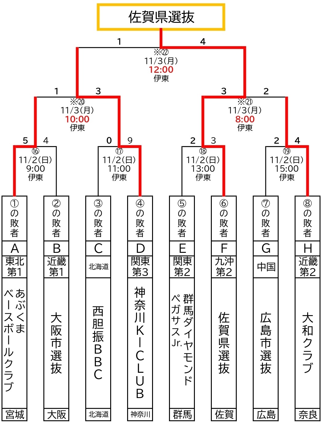 | 佐賀 | 0 | 0 | 0 | 0 | 0 | 3 | X | 3 |
